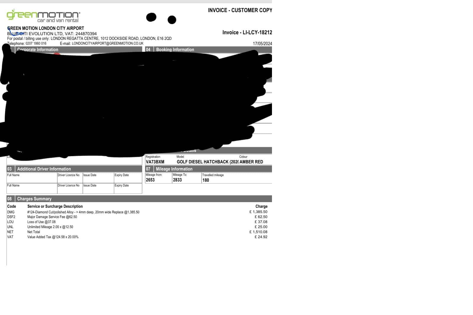 Since the car rental agreement is watertight, and they can do this if they like, do not rent from Green Motion Car Rental London City Airport. Until such time as this is investigated properly and the problem is addressed, not doing business with them is all the consumers can do. I want to make it clear this is the location I used, but a quick search on Google shows this is happening at locations all over the country. The reports of how bad it is had been around for at least 5 years, and I found identical reports to mine going back 5 years from June 2024. It’s crucial that we act now to protect ourselves and others from these unfair practices.