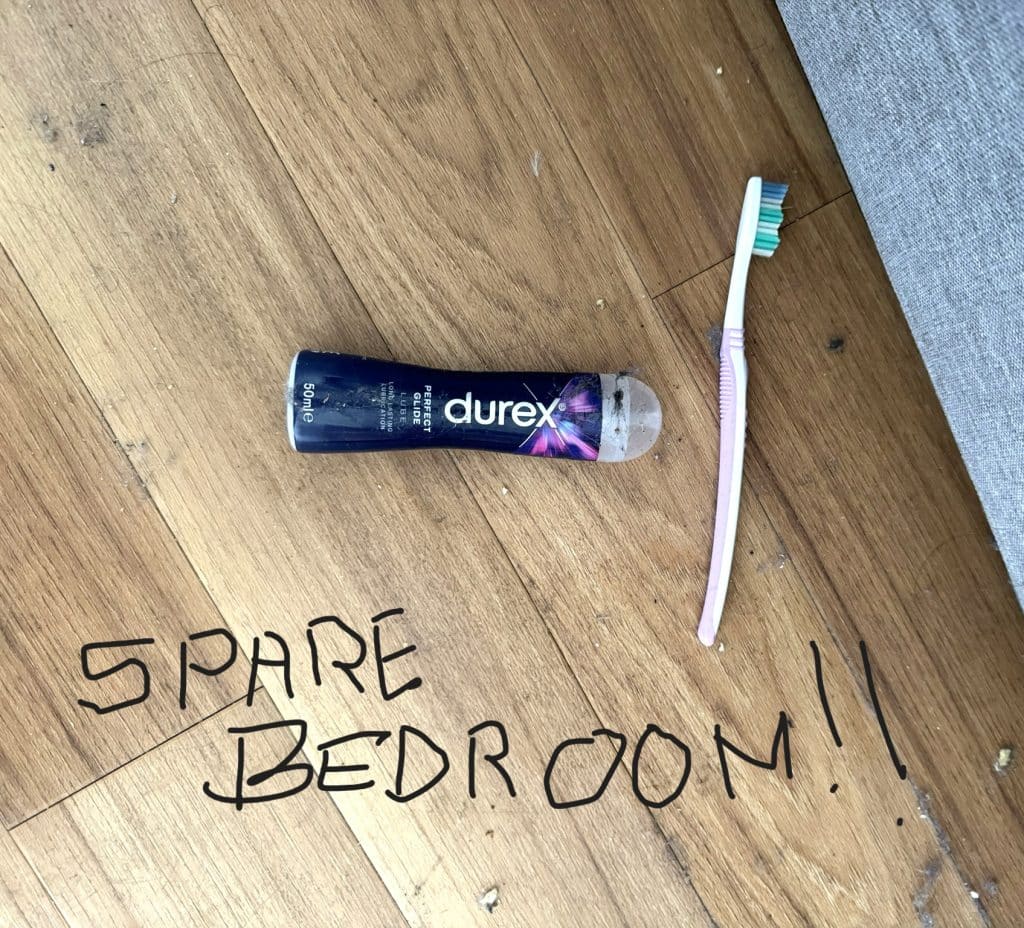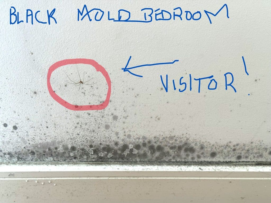 I don’t know where to start.  When we went to prepare our bed, it was very clear that the bed sheets had not been changed and the entire bed smelled of mold.  The duvet underneath the smelly cover was dirty.  At this point, we got some garbage sacks and started putting all the bedding and linens into them.  The pillows were disgusting and to add insult to injury some were feather pillows.  If you have never seen or smelled a rotting feather pillow good for you it is not pleasant.  The sheets which were dirty and had not been changed of course had human hair on them.  The floors had not been brushed or vacuumed and to add insult to injury the master bedroom had extensive black mold right beside the head of the bed.  We found some interesting items in the room which made the fact that the sheets had not been changed even more disgusting.  Another interesting issue was there was way too much furniture in the rooms to the point where there was very little room to move around the bed or the room.  It was as if he was using the flat to store random furniture.