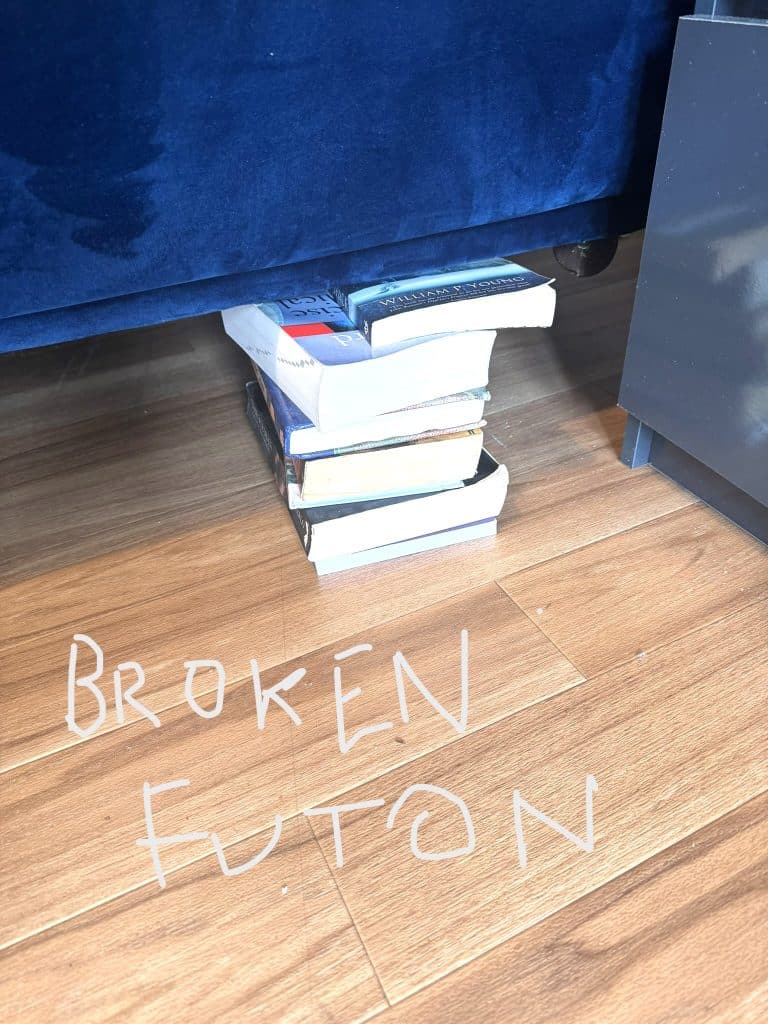 It did not end there the washing machine broke down and we were without a machine for 3 weeks. One of the legs fell off the futon because we dared to sit on it.