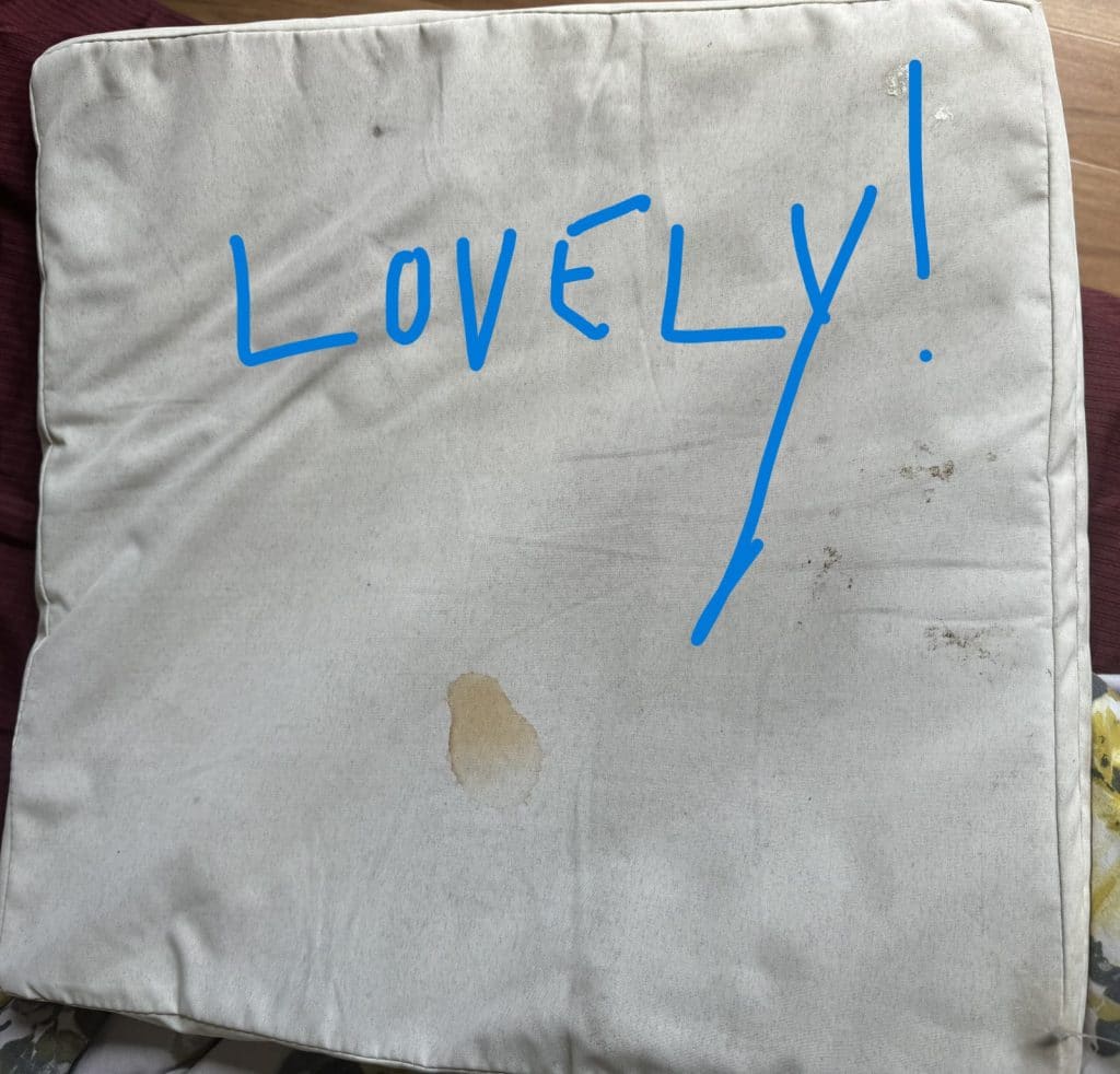 We had to go to the local stores and buy new bedding, mattress covers, duvet, pillows, pillowcases, sheets, and cleaning products. We had to buy tea towels, bathroom towels, and clean cushions for the patio.   We spent over 300 pounds.  We were able to get a night’s sleep although I was extremely uncomfortable knowing how dirty the place was.  The next day we contacted the host and sent pictures. He said the flat had been cleaned before we arrived which was complete nonsense, and he would sort it out with the cleaning Company.  Two weeks after we arrived a cleaner came and did the deep cleaning which was needed.  She was horrified and that was after I had done some cleaning so we could bear to be there.  He delivered a new kitchen table nice, with two chairs the others were in for repair, he said.  We have never seen the two other chairs we have to drag chairs from the patio to sit at if there are more than 2 of us. He did take the bed linen away and came back with it laundered but at that point, I wanted nothing to do with it and we stuck to our own.